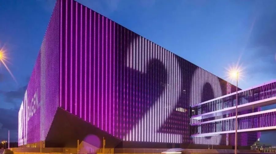 总部大楼造型最引人注目的当属其立面上的巨型网格,网格整体为斜向交叉式布局,呈现出近似菱形的图案效果。